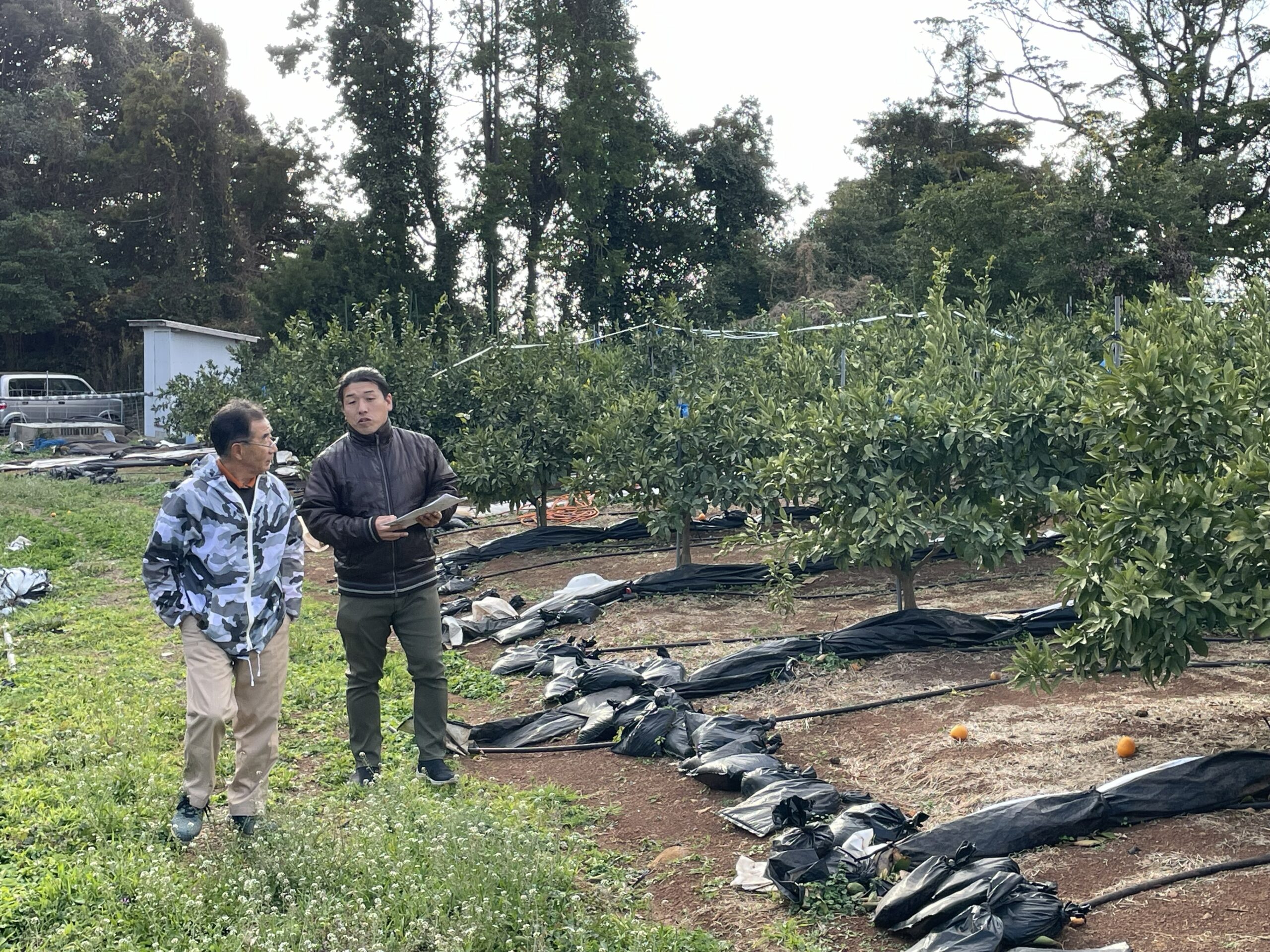営農アドバイザーが在籍しており、現場に足を運び、各農家様の園地に合った農薬・肥料をヒアリングし、日々の畑管理のアドバイス、防除計画、施肥設計などを行っています。