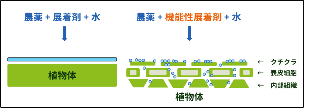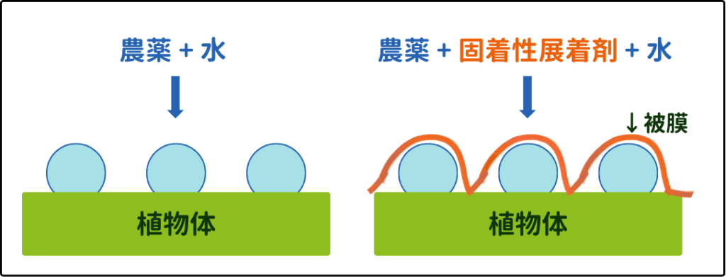植物体の表面にワックス層をつくって薬剤を固着させる作用があります。